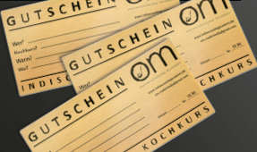 mit oder auch ohne Kochkursdatum. Wählen Sie zwischen dem GOLDENEN-GRAVUR-GUTSCHEIN (per Post, Preis 10€) oder unserem kostenlosen ONLINE-Gutschein aus. Gültigkeit 3 Jahre.